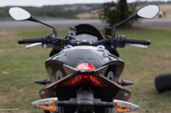 As soon as you start the Tuono, it lives up to its name. A first roll of thunder escapes the (oversized) end-can when you wake up the engine. Once you start it, Thor descends a whole arsenal of thunder upon you and your surroundings. The thunderous sound this beast produces make the hairs in my neck rise. And not just those hairs…