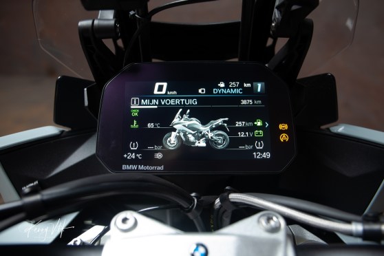 First let’s start with the dull part of this review: all the bells and whistles you can find on this top of the line machine. Dynamic ESA, lightweight cast wheels, adjustable windscreen, small storage compartment, LED-lighting, TFT-display, Connectivity, integrated pannier attachment points, Pro riding modes, ABS Pro, hill start control, traction control, engine brake settings: it all comes as standard.