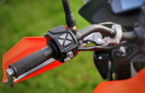 Just like the rest of the family, the 390 flaunts a bolt-on trellis subframe, cast swingarm and adjustable WP suspension. The standard equipment features ride-by-wire, adjustable and lean-angle dependent traction control and ABS, a slipperclutch, LED-lighting and a 5” TFT dashboard. The buttons on the tapered aluminum handlebars look identical to the ones on previously mentioned bigger KTM adventure bikes and the structure of the menu on the dash feels KTM familiar. You get all of that for an impressively low starting price.