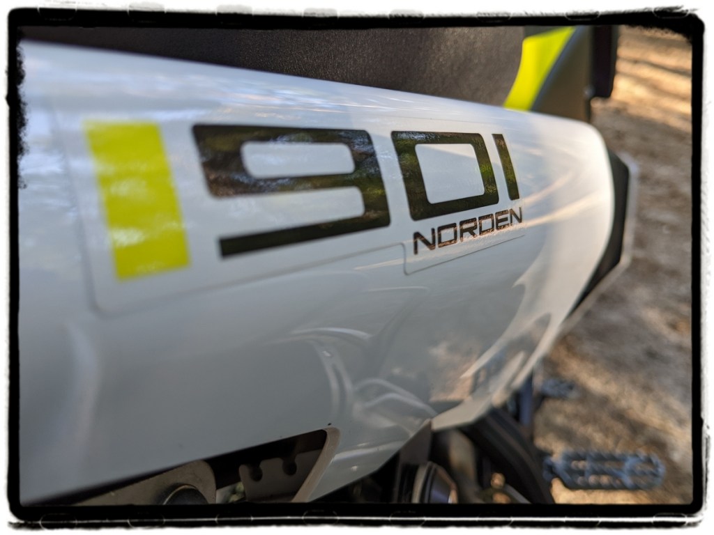 The Norden doesn’t want to be a pure adventure bike like the KTM 890 Adventure. It’s more of a travel enduro. You’ll notice that from the first second on the seat. The cockpit is wide and puts you well out of the wind. In combination with the hanging tank cheeks that can keep your lower legs and feet dry, a rainshower isn’t much of an issue.