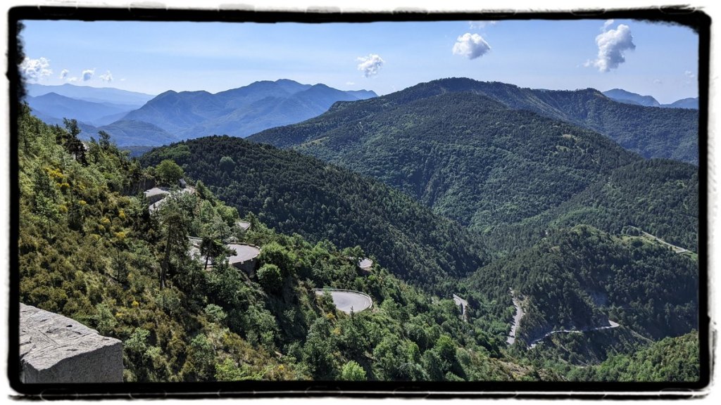 For breakfast we got a succession of smaller cols served. Quiet and often fairly tight corners. Personal favorite view: the top of the Col Saint-Roch.