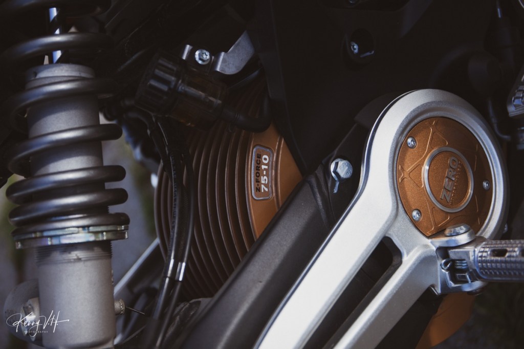 Just to say: last minute decisions to do a long ride isn’t an option with the Zero. Charging on the go, especially with the standard version, takes too long. And you also have to drag the heavy charging cable along. Fortunately, it fits in the handy “trunk space”, where you normally find the gas tank. However, if you opt for the larger battery or the fast charging option, you will lose that space. And finding a nice stop-over with a socket within reach isn’t easy either.