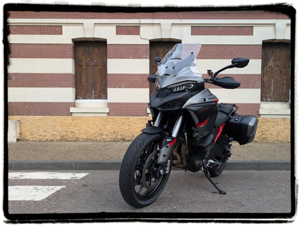 When I set off on the Multistrada for the first time, the exceptionally comfortable riding position immediately stood out. It felt familiar right away. What particularly struck me was how the handlebars feel in hand. It’s rare that I consciously think, “Hey, this feels great!” A day of racking up miles towards France was far from a chore. A small note about the windscreen: it’s easily adjustable manually, but with my 5’11”, I found that even in its highest position, it didn’t fully eliminate turbulence. Not a big deal on back roads, but on the highway, an extra few inches would significantly increase comfort.