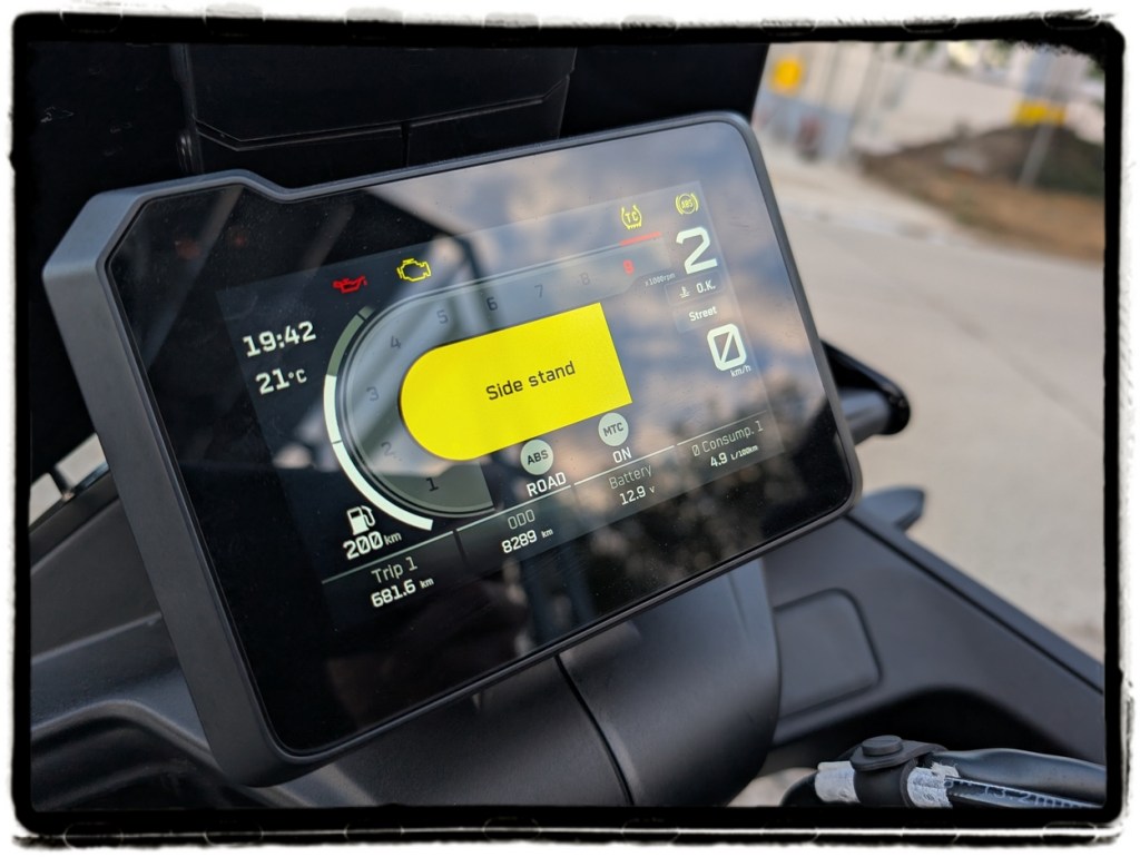 That said, when you do decide to go full hooligan, it’s good to know a safety net is watching your back: cornering ABS and traction control, Supermoto ABS (front active, rear disabled) and three standard ride modes (Rain, Street, Sport) plus an optional Track mode. Personally, I found Sport a bit too twitchy, so I spent nearly all my test miles in Street. More than enough for a fat slice of fun with this playful beast.