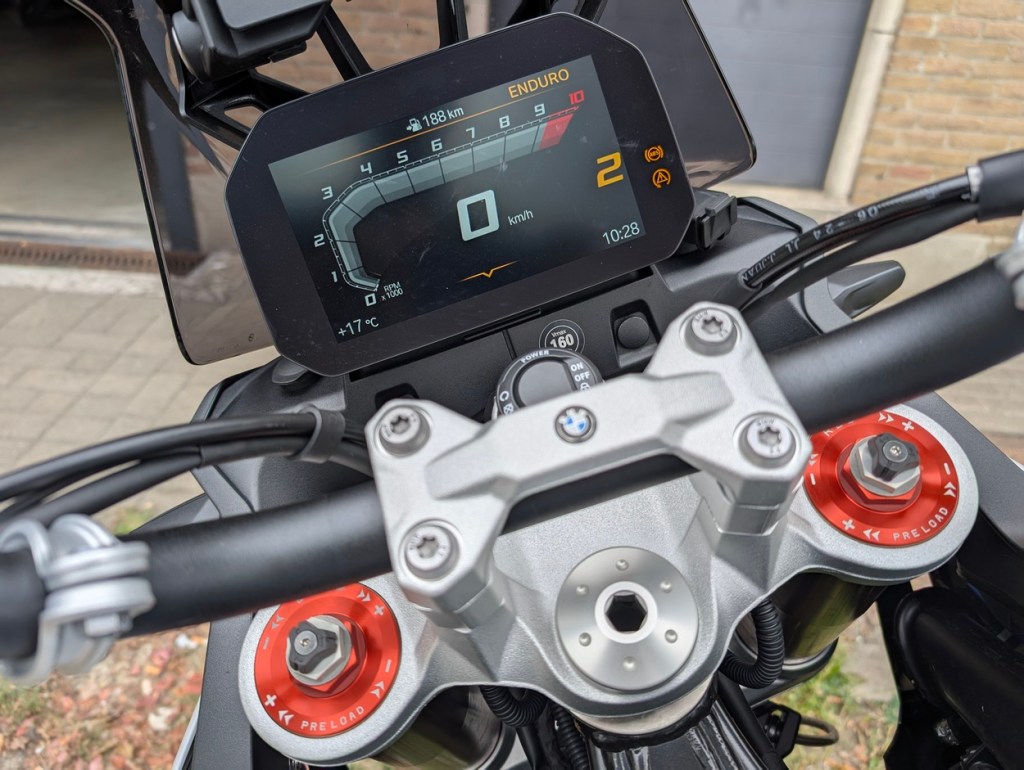 BMW wouldn’t be BMW if the riding modes didn’t come bundled in a pack. The Dynamic Pack adds Dynamic and Enduro modes on top of the standard Rain and Road settings. The first two are the only ones I actually used. Of course, you’ll also want the optional quickshifter that comes with this pack. Both packs are absolute must-haves if you want to unlock the full potential of the F 900 GS.