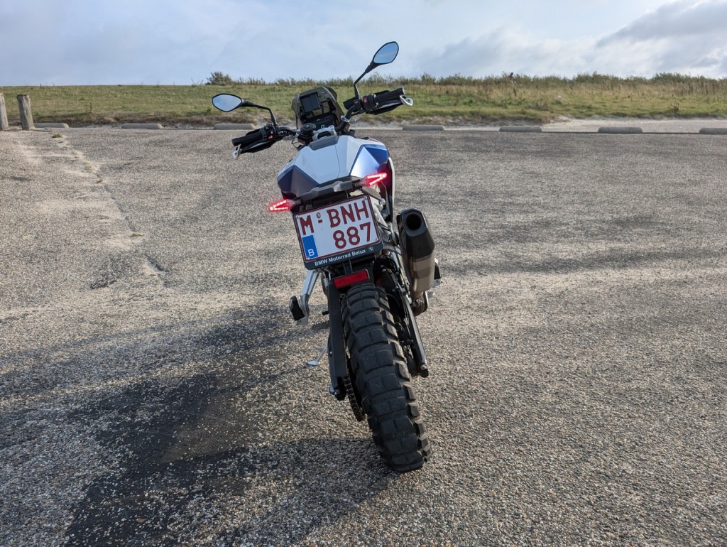 Enter the BMW F 900 GS. In Bavaria, they’ve flipped the script completely and gone all-in on a more hardcore approach. I notice it right away when hopping off my own (big) GS and onto the 900: the handlebar sits higher and further forward, while the footpegs are much lower. The ergonomic triangle of the 900 GS is clearly optimized for off-road riding.